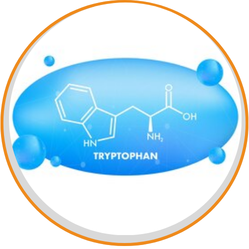 O L-triptofano é um aminoácido essencial, obtido pela dieta, utilizado na síntese de proteínas e precursor de neurotransmissores como serotonina e melatonina. É utilizado como suplemento auxiliar no tratamento de insônia, ansiedade, depressão e no controle do apetite.